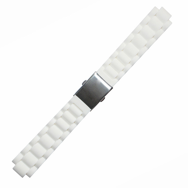 サイズ及び設計: このシリコーン ゴムの時計バンドは広く20*12mmである。2部分は同じ長さである。それは止め金、か蝶バックルを折ることによって接続される。 設計はステンレス鋼の時計バンドをまねる。時計バンドはPantone Cの本色に従って多数色に顧客用である場合もある。 時計バンドについての他の条件があれば、非常に私達にあなたの好みに従ってあなたのために設計するために連絡するため歓迎された。形およびサイズは顧客用である場合もある。サンプルは利用できる。それは在庫があれば自由である。